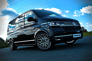 Dies bedeutet, neben den originalen Anbindungen, optimale Einpresstiefen um Schleifkontakt an Bremsen und Schiebetüren zu vermeiden, und am vorderen Innenkunstoffradhaus nur eventuelle, geringstmögliche Nacharbeiten zu ermöglichen, und auch ohne Distanzscheiben eine perfekte Optik und Funktion, zu bieten. Auch perfekte Bremsfreigängigkeit bei der neuen grossen 17-Zoll Bremse des T6.1 !