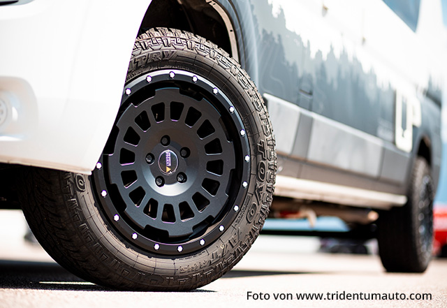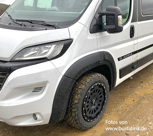 Real 2-piece Allterrain Felge incl. detachable protection ring and for each model especially developed as carefree tailormade package. This means also 1380kg wheelload and best possible quality and offsets/ET for easy installation without modifications at the body or further extra parts. Only for LIGHT Version of Fiat Ducato are the fender skirts of the Fiat Maxi version required) . And also incl. TÜV tested brake clearance. And incl. TÜV certificates for all listed vehicles. Also incl. for example the tyre size 255/55/18 which is listed in our relevant TÜV certificates and incl. important AT tyre sizes listed in these relevant certificates !