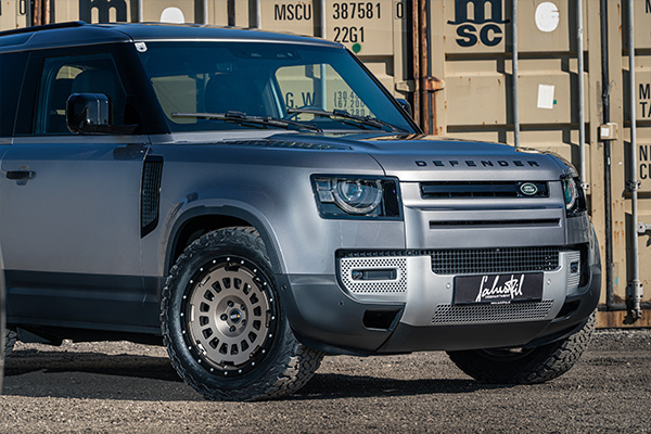 For the Landrover new Defender as authentic NO FAKE Allterrain wheel - and NOT a SUV style wheel ! Which means an exchangeable bolt -on collision protection ring, 1100kg TÜV-tested wheel load and best possible ET/ offsets + TÜV certificates especially also for the new Defender and the works 20" tyre sizes. Therefore no contact problems to body or arch. Plug &play - no bodywork etc necessary.
