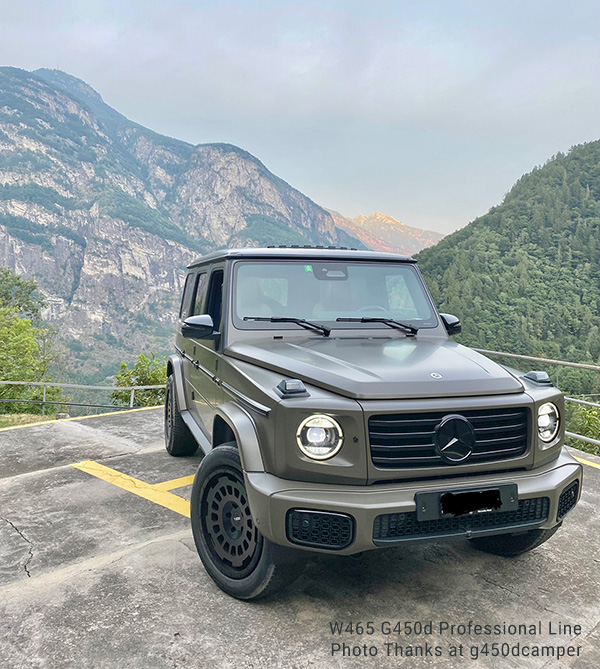 Mit 1050KG Radlast speziell für Mercedes G ( W463A, W465 und W463) entwickelte, authentische NO FAKE Allterrain Felge, die ihresgleichen sucht. Dies bedeutet, neben dem echten austauschbaren, schraubbaren Anfahrschutzring, 1050kg geprüfte Festigkeit , den originalen Anbindungen, Teile Gutachten speziell für Mercedes G , passend für orig. 20 Zoll Werks Serien Bereifung aber auch für 285/55R20 freigegeben und im Gutachten gelistet ! Desweiteren optimale Einpresstiefen um Schleifkontakt an Bremsen oder Radhaus/ Karosserie zu vermeiden und diesbezügliche Nacharbeiten zu vermeiden und auch ohne Distanzscheiben eine perfekte Optik und Funktion, zu bieten. Nur bei den kleinen Kotflügeln ( Professional + Basis ) kann es bezgl. den EU Richtlinien notwendig sein ,zusätzl. Radabdeckungen zu montieren oder auf die AMG Line Kotflügel zu wechseln wenn möglich .